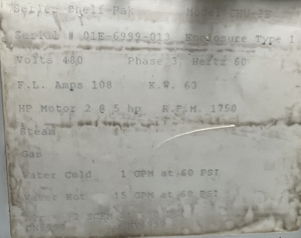 * Voltage: 480-3-60 Hertz